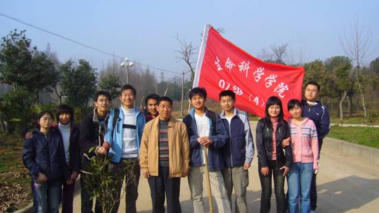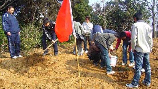 3月15日是个春光明媚、晴空万里的一天。早上八点半,07级生科4班45名同学们便举着班旗、扛着树苗,提着水桶和铁锨,乘车来到神山苗圃。在神山公园绿化设计总工程师滕主任的指导下,同学们在事先选定的植树区开始植树。虽然同学们只准备了6棵桂花树苗,但在植树区内,大家相互协作、挖坑、填土、浇水,分工明确、有条不紊。到处都是忙碌的身影,一片热火朝天、春意浓浓的景象。