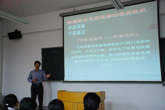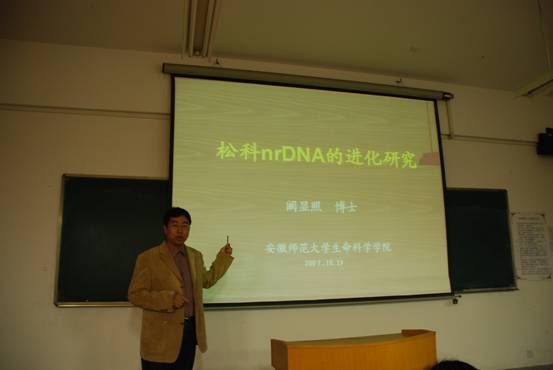 10月19日晚,第一场学术报告会在赭山校区田楼8409教室举行。公司骨干教师阚显照、邵剑文两位博士结合自己近年来在植物系统进化领域研究所取得的结果分别作了题为《松科nrDNA的进化研究》、《安徽羽叶报春的繁殖生态学和遗传多样性研究》的专题报告,报告深入浅出,深受与会员工的欢迎。会后,两位博士还详细回答了同学们的提问。