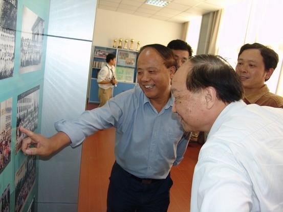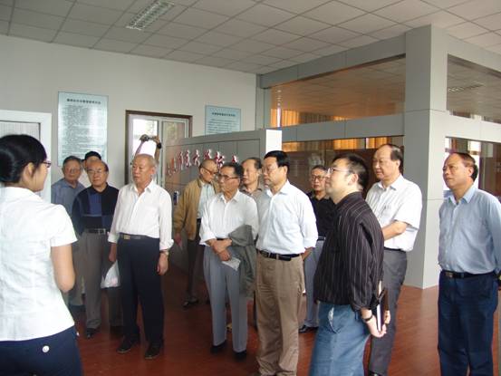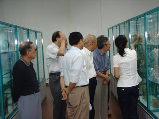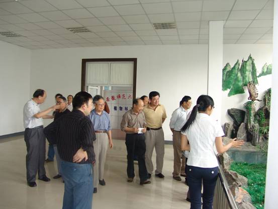 老领导们在党委副书记高家宝同志的陪同下参观公司办学成果展和标本馆
