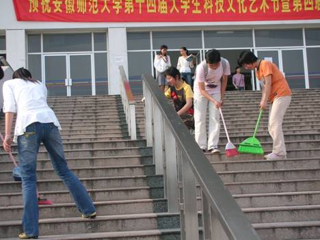 5月7日—10日,m88官网第7期老员工入党积极分子培训班学员以学习小组为单位开展了清理校园“牛皮癣”、打扫教室、清洗课桌、花草认知保护等以美化校园为主题的多项青年志愿者服务实践活动。