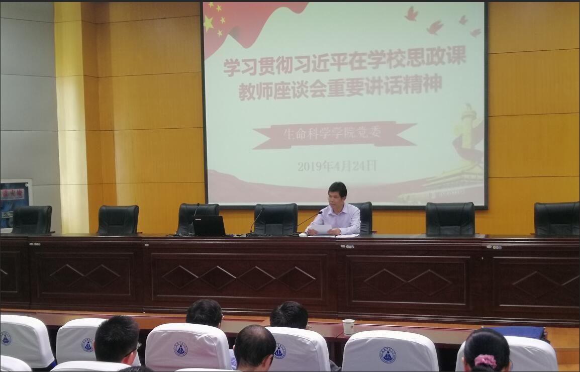 本网讯(汪倩倩)2019年4月25日下午,生科公司党委在田楼报告厅召开全体教职工大会,集中学习习近平在公司思政课教师座谈会上重要讲话精神。会议由公司党委书记蒋学波主持。