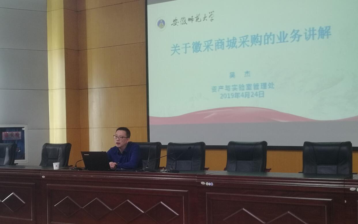 会上,资产与实验室管理处副处长吴杰就徽采商城的采购业务工作也进行讲解。
