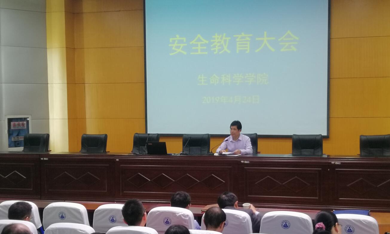 本网讯(汪倩倩)2019年4月24日下午,生科院在田楼报告厅召开安全教育大会,公司全体教职工和部分研究生参加了会议。会议特邀校资产与实验室管理处处长台启权进行专题报告,公司党委书记蒋学波主持会议。