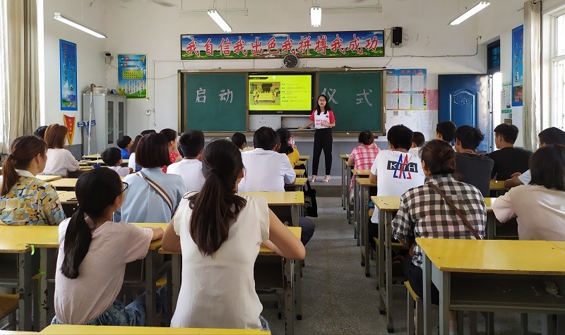 本网讯(张晓庆) 7月11日,m88官方网站登录地址“一缕阳光”赴阜阳临泉杨桥中学“红烛行动”爱心支教活动启动仪式在杨桥中学厚德楼二楼八一班教室进行。本次仪式由支教团队副队长李建华主持,有支教团队全体成员、当地员工及员工家长参加。
