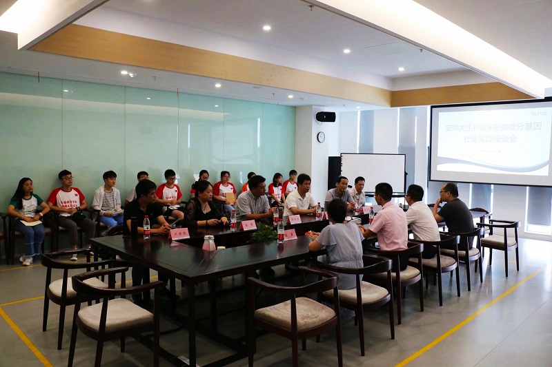 本网讯(生科院 何馗馗) 7月23日,公司党委书记蒋学波、副经理胡好远、专业负责人陈冬生来到巢湖安徽微分基因科技有限公司,对生科院赴微分基因公司实践团队进行了慰问与指导。