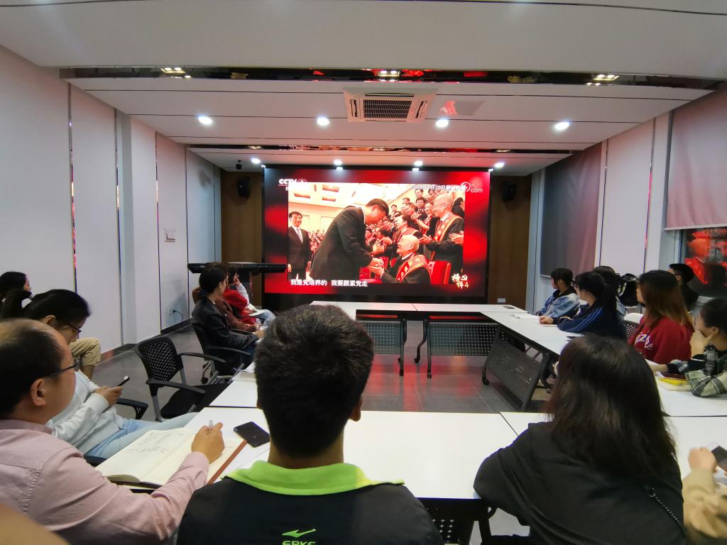 本网讯(生科院 汪倩倩/文 潘川/图)10月21日晚8点,生科公司党委书记蒋学波、部分支部书记和130余名员工党员代表在生化楼各会议室集中收看了CCTV-1首播的专题节目《榜样4》。