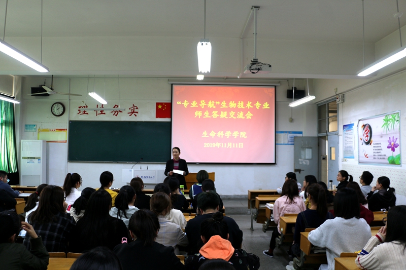 本网讯(生科院 梅佳怡 陶文辰)11月11日,深耕细作抓管理,固本强基促成才。为进一步加强学科专业建设,明确专业方向,公司在田楼8209教室举办生物技术专业师生交流答疑会。生物技术专业负责人刘爱民教授,专业教师李冰欣、谭小娟、张亚,辅导员赵喆及2018级生物技术专业全体员工参加了此次活动。会议由刘爱民主持。