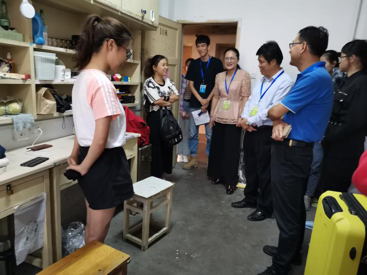 当天下午,公司领导班子带领辅导员老师一同走进员工宿舍了解住宿情况。党委书记蒋学波十分关心同学们来校的感受,他亲切地问候员工是否安顿好内务、对公司住宿环境是否满意。副书记刘振杰再三提醒员工在校注意安全,保管好个人财务。临走时,他还十分牵挂来校家长返途交通工具、安全等问题。经理朱国萍叮嘱新生军训期间注意安全,认真聆听学子心声。所有新生辅导员为班级宿舍配备体温枪,为每位员工做好晨、午、晚体温检测。离开宿舍后,蒋学波告诉辅导员老师应当经常走进员工宿舍,亲近员工,做好员工的人生导师,知心朋友。