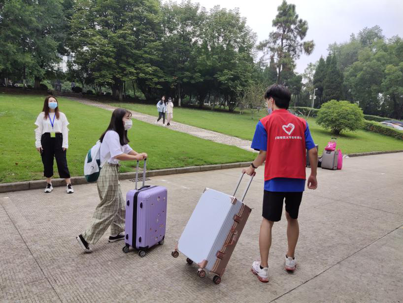 9月19日早上六点,员工会的同学们已经全员在迎新报到点“严阵以待”。迎新现场,志愿者们在门口分散人流、指引导向、搬运行李;在接待处耐心地接受家长和新同学的咨询;在各个部门微笑着为学弟学妹办理手续。全体工作人员有条不紊的带领新生完成所有的报到程序。