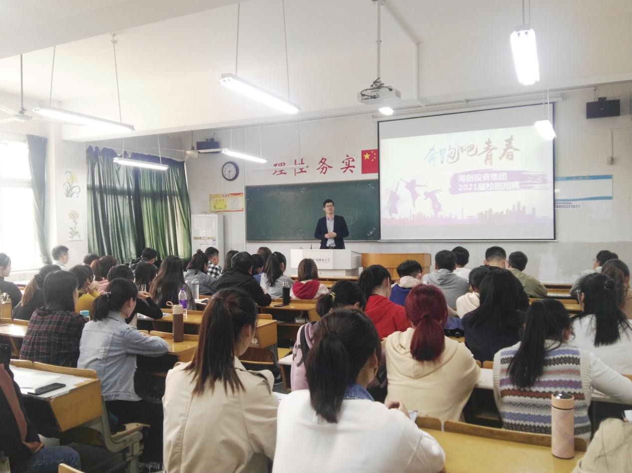 本网讯(生科院 韩师韵)为进一步做好毕业生就业服务工作,针对性提高毕业生就业质量,10月14日下午,m88官网在田家炳教学楼8201举行海创投资集团校园专场招聘会,有针对性的招聘2021届园艺专业毕业生。公司党委副书记刘振杰参加并主持招聘活动。
