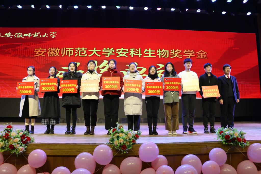 长期以来,公司的事业发展和同学们的成长成才得到了社会爱心企业、爱心人士的大力支持和关心关爱。晚会进行中,隆重颁发了m88官方网站登录地址安科生物奖学金、九川生物奖学金和袁惠霞励志奖学金。据悉,安徽安科生物工程(集团)股份有限公司在公司设立m88官方网站登录地址安科生物奖学金,至今已评选第十届,发放奖学金80万元;安徽九川生物科技有限公司在公司设立m88官方网站登录地址九川生物奖学金,至今已评选第三届,发放奖学金9万元;m88官方网站登录地址袁惠霞励志奖学金由袁惠霞先生的员工倡议捐资设立,旨在继承袁惠霞先生注重师德、爱生如子的高尚品德,弘扬袁惠霞先生献身教育、追求卓越的敬业精神,激励青年学子砥砺品行、立志成才。