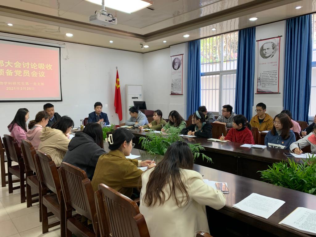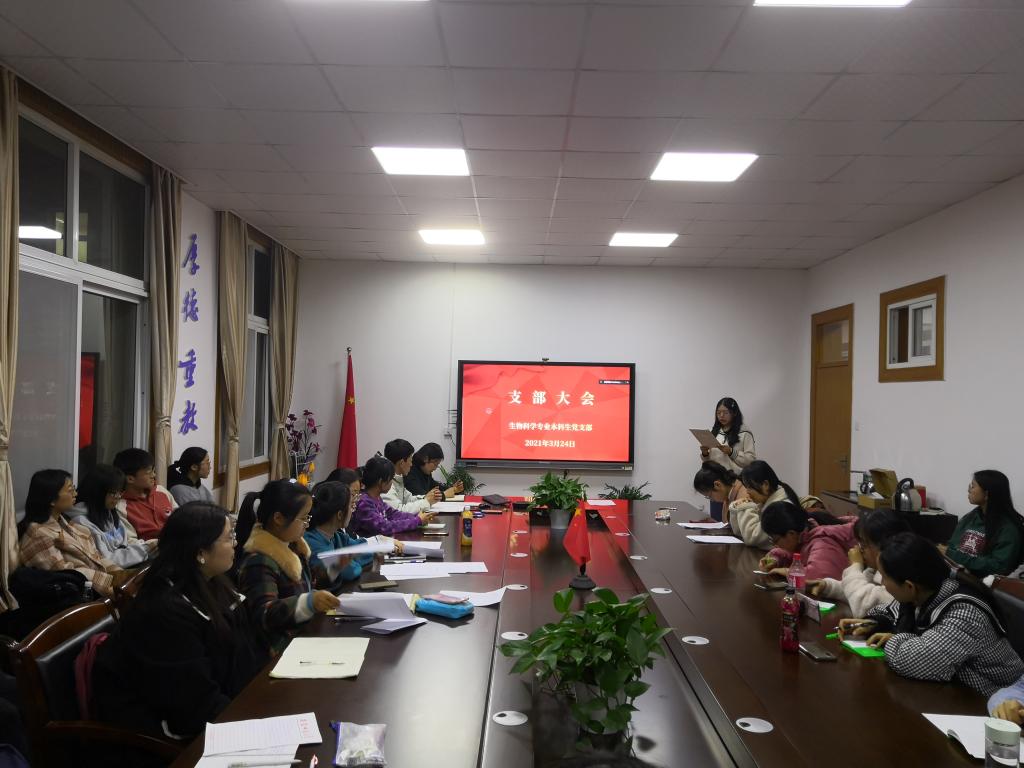 本网讯(生科院 何馗馗)3月24日-26日,生科院四个员工党支部分别召开了党员大会,讨论吸收了李婷等14名毕业年级发展对象入党问题。公司党委书记蒋学波、副书记汪倩倩、党委委员刘爱民分别列席支部指导。