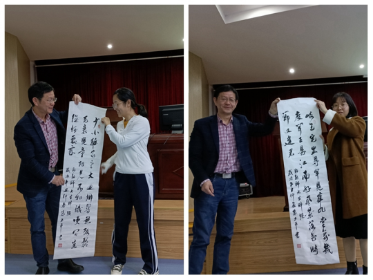 报告会上,朱董事长还赠予员工自己的两幅墨宝。