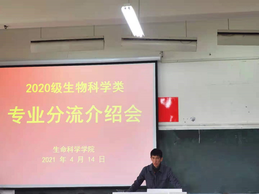 本网讯(生科院 王烁 王志)4月14日,2020级生物科学类专业分流介绍会在教学楼1401教室举行。生物技术专业负责人刘爱民教授和生物科学专业负责人杨安娜副教授分别对专业进行介绍,为专业分流工作开展奠定良好基础。本次介绍会由辅导员王志主持,2020级生物科学类全体同学参加。