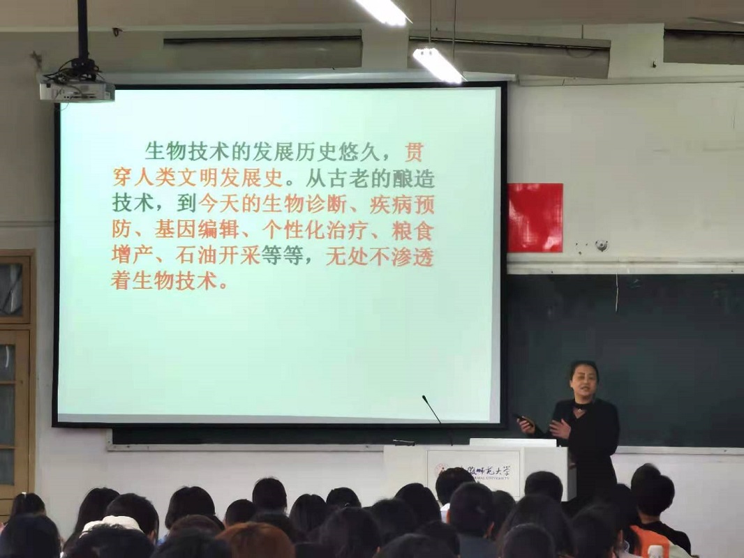 介绍会上,刘爱民从专业概述、团队力量及就业前景几方面,客观详细地为同学们讲解了生物技术专业的现状。她强调,生物技术已成为世界各国优先发展的高新技术领域,同学们选择专业时要充分考虑市场需要。杨安娜围绕专业特点、培养目标及毕业去向等方面详细解读了生物科学专业培养方案,希望同学们以探索科学真知为首要前提,结合未来职业规划,理性看待专业分流,做出合理选择。
