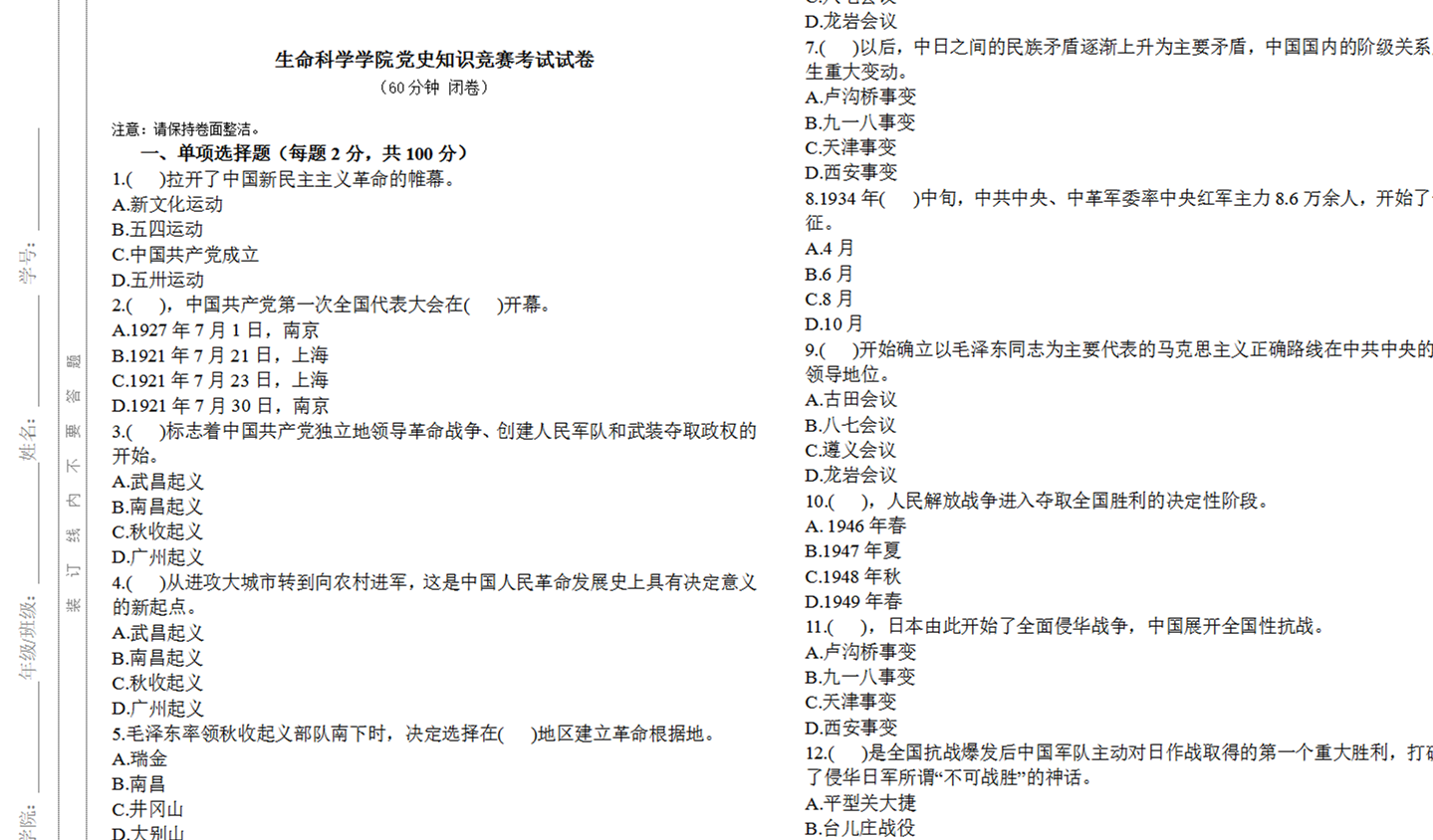 测试题目以中国共产党发展历程、重要人物、重大历史事件等为主要内容,涵盖了党史、新中国史、改革开放史、社会主义发展史和习近平总书记在党史学习教育动员大会上的重要讲话,全面考察全体教职工和员工对党史知识的理解和掌握情况。员工组还将进一步选拔优秀选手参加公司党史知识竞赛决赛。