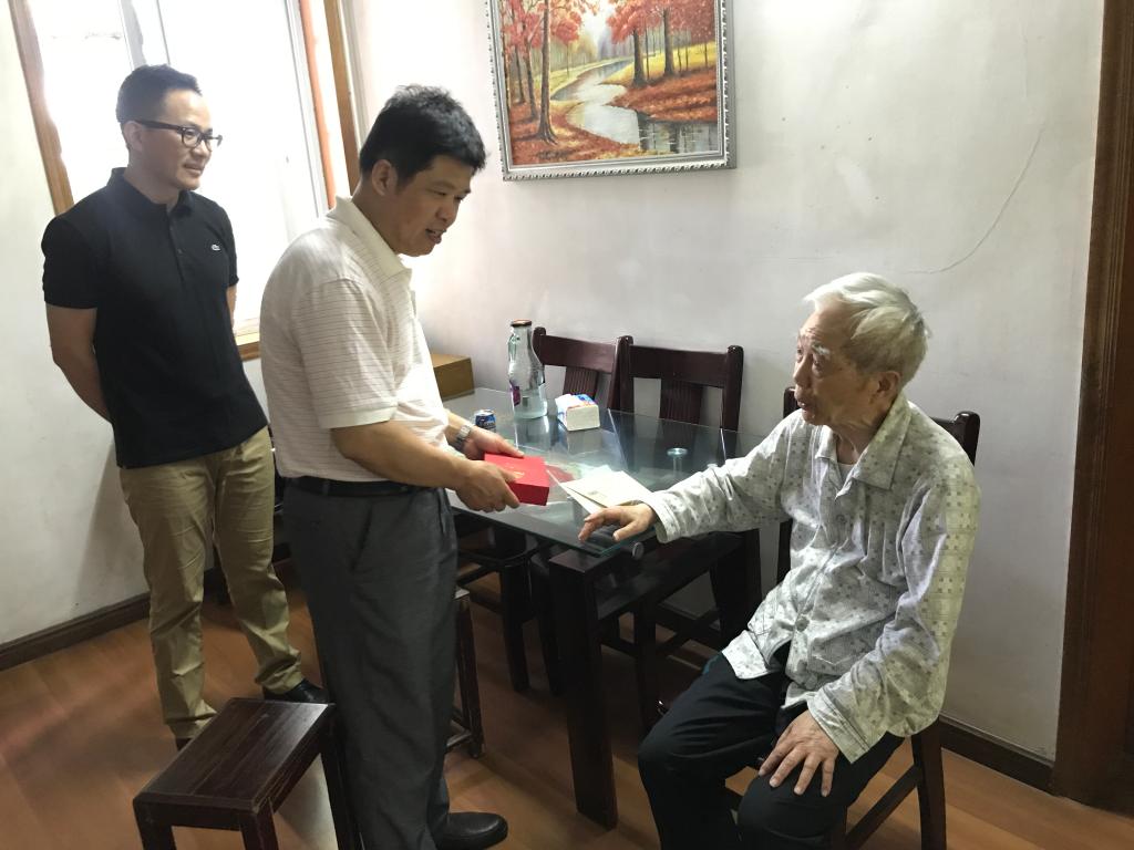 本网讯(生科院 何馗馗) 在党的百年华诞即将来临之际,6月24日上午,公司党委书记蒋学波,副书记汪倩倩,副经理王立龙、王鹏,党委委员刘爱民等走访慰问老党员,向他们致以节日问候。
