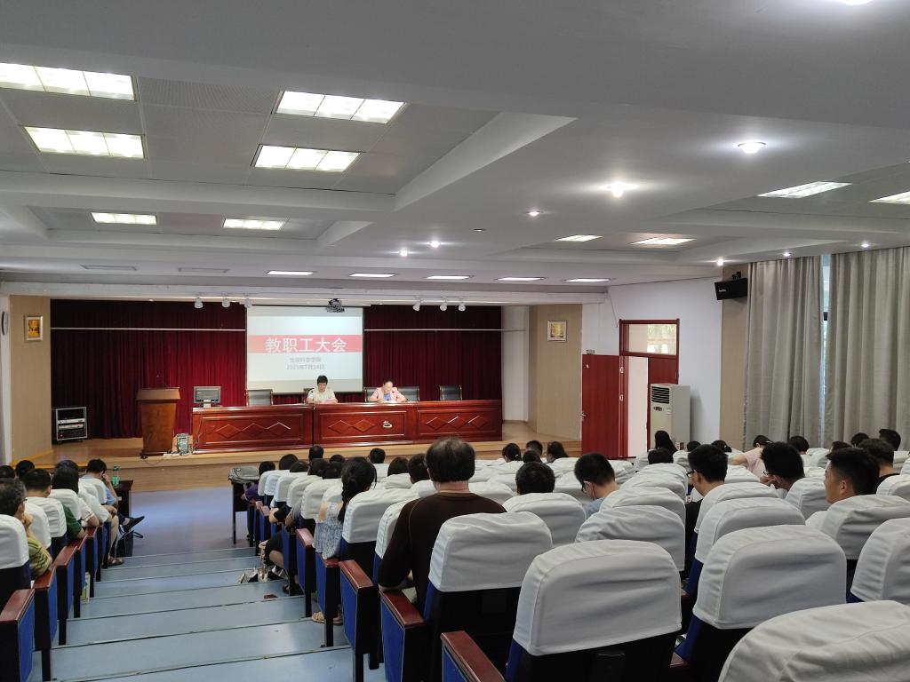 本网讯(生科院 何馗馗)7月14日,m88官网召开教职工大会,学习了《关于新时代加强和改进思想政治工作的意见》的文件精神,总结本学期工作、布置暑期工作。会议由公司党委书记蒋学波主持。院领导、全体教职工参加大会。
