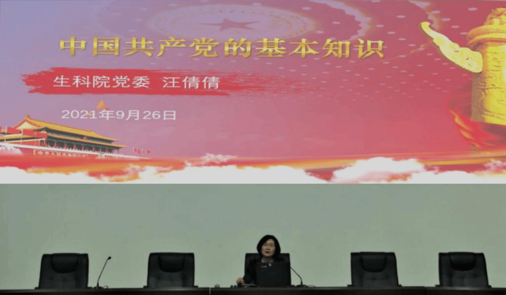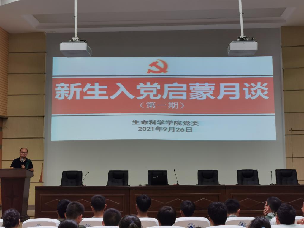 本网讯(生科院 张瑞妮 何馗馗)9月26日晚,公司党委启动新生入党启蒙月谈教育。第一期由公司党委副书记汪倩倩主讲党的基本知识。公司辅导员、2021级全体新生参加报告会。报告会由公司党委秘书何馗馗主持。