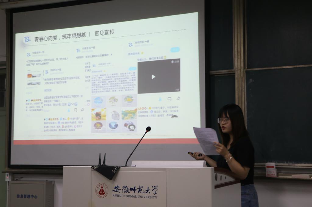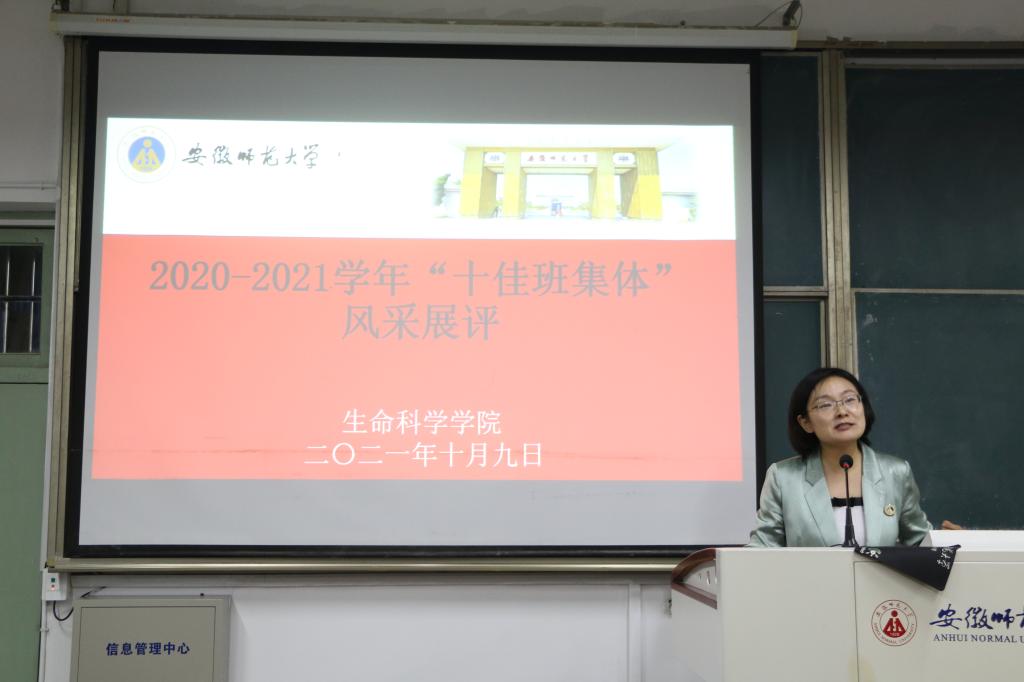 本网讯(生科院 胡玮 周奂)10月9日晚7点,m88官网在生化楼后二楼教室举办2020-2021学年十佳班集体汇报评比会,生科公司党委副书记汪倩倩、团委书记胡玮及全体辅导员担任本次活动的评委,各班集体汇报人、2019-2021级各班员工代表参加了本次评比会。