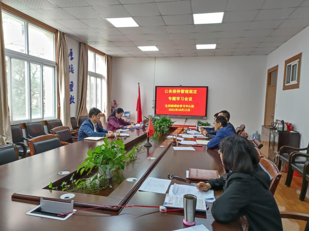 本网讯(生科院 何馗馗)10月11日,公司党委召开理论学习中心组会议,专题学习公务接待管理规定,公司党政领导参会。会议由公司党委书记蒋学波主持。