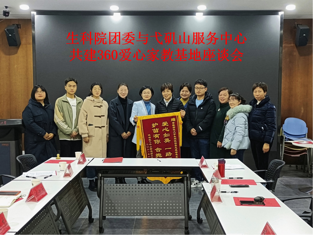 会后,双方签署《茁壮“橙”长公益项目合作协议书》,镜湖区弋矶山街道组关工委赠与生科院志愿者服务部锦旗。