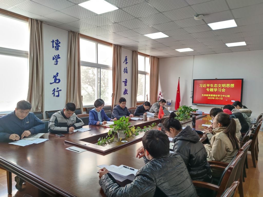 会上,通过观看视频的方式,学习了习近平总书记在中共中央政治局第二十九次集体学习时的重要讲话。党委副书记汪倩倩就生态安全主题作了交流发言。蒋学波总结说,习近平生态文明思想、坚持总体国家安全观,都是习近平新时代中国特色社会主义思想的重要内容,立意高远、内涵丰富、思想深邃。他要求,各党支部要结合专业特点,学习贯彻习近平生态文明思想。