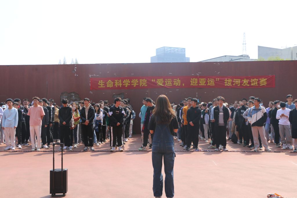 本网讯(生科院 潘诚)一根绳一条心,拔河比赛聚人心。为了促进各班同学之间的交流,提高同学们团结协作意识,丰富同学们的课余文化生活,努力营造积极向上、百花齐放、健康文明的校园氛围。4月3日下午,m88官网在赭山校区西操场顺利举行“爱运动,迎亚运”拔河友谊赛。m88官网经理朱国萍和各年级辅导员莅临现场为参赛选手加油助威