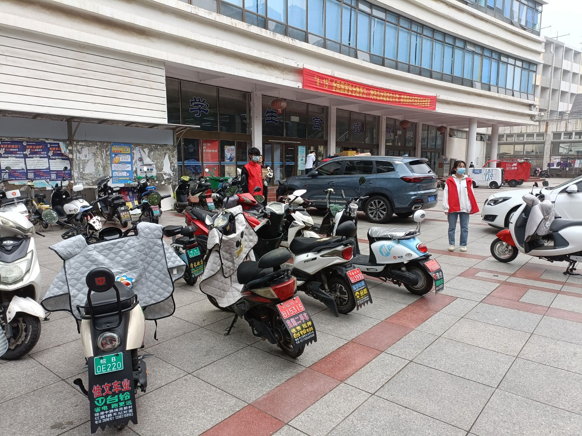 5月1日上午,无论是在食堂门口的停车处还是在教学楼的教室里,都有穿着红马甲的生科志愿者的身影。食堂门前,他们将电动车摆放整齐,并引导同学们维护停车处的秩序;教学楼里,志愿者们拿着扫帚将地上的垃圾扫起,将抽屉里的废纸清理干净。志愿者们辛勤劳动,努力为同学们提供一个干净整洁的学习环境。