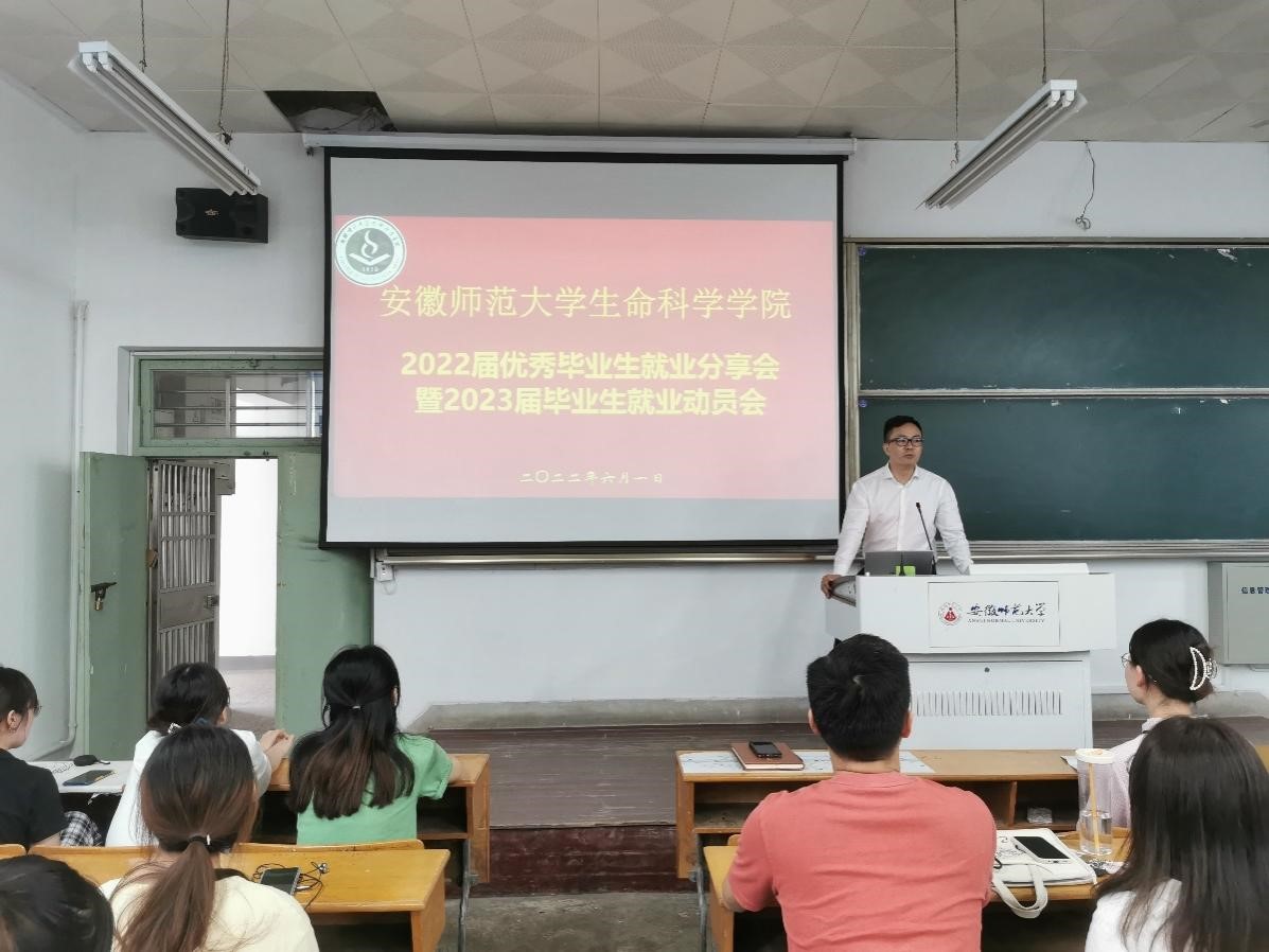 2020级学科教学(生物)专业葛星宇同学分享了自己参加教师招聘考试的经验,2020级职业技术教育(农林牧渔)专业程芮同学分享了公务员考试中自己的切身体会, 2019级动物学专业温月同学分享了自己继续在安师大读博的心路历程,2019级生化与分子专业苏月同学分享了自己成为高中生物老师的求职历程,2019级植物学专业张慧同学分享了高校工作的有关事项,给想进入高校工作的同学指明了方向。整场活动气氛热烈,同学们参与度极高,其间穿插着提问交流环节,几位优秀毕业生的丰富经验及诚恳建议让在场的同学受益匪浅。研究生辅导员魏泽坤老师积极鼓励2023届毕业生要早做规划,提前准备,保持清醒头脑,对关乎自己的就业工作保持高度重视!