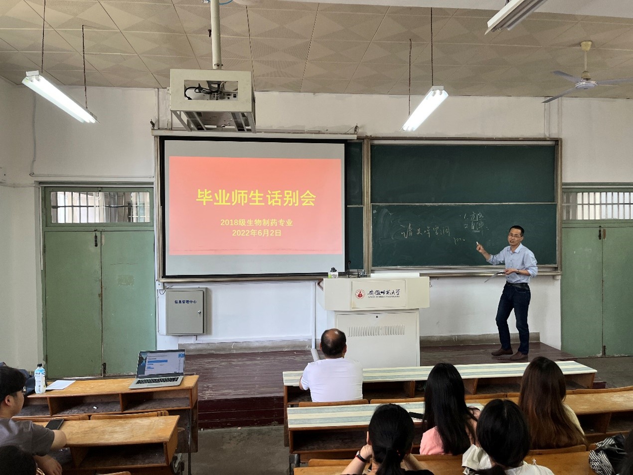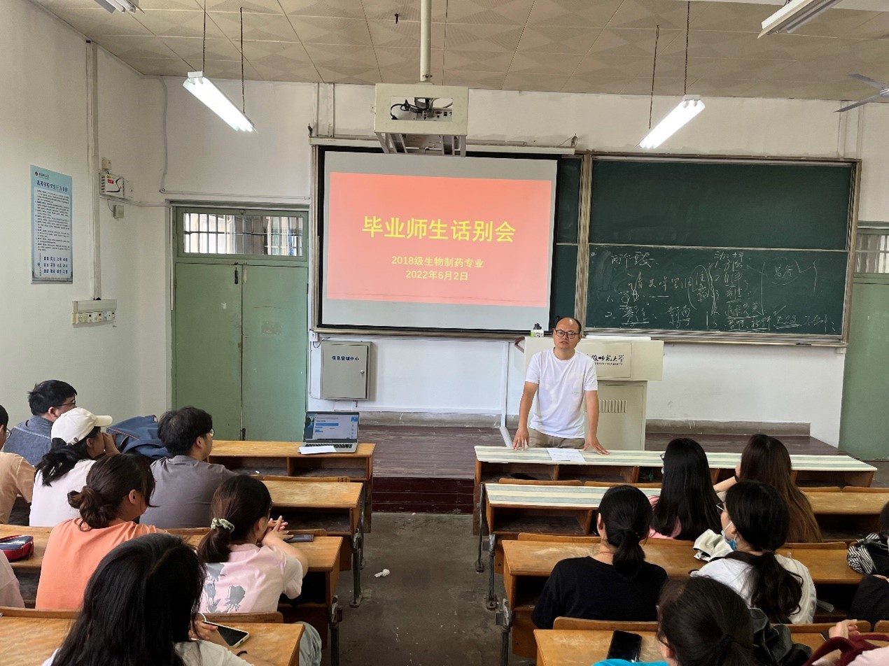 6月2日上午,m88官网2018级生物制药专业在生化楼2024教室召开毕业师生话别会。公司副经理、生物制药专业负责人陈冬生参加。活动由辅导员何馗馗主持。