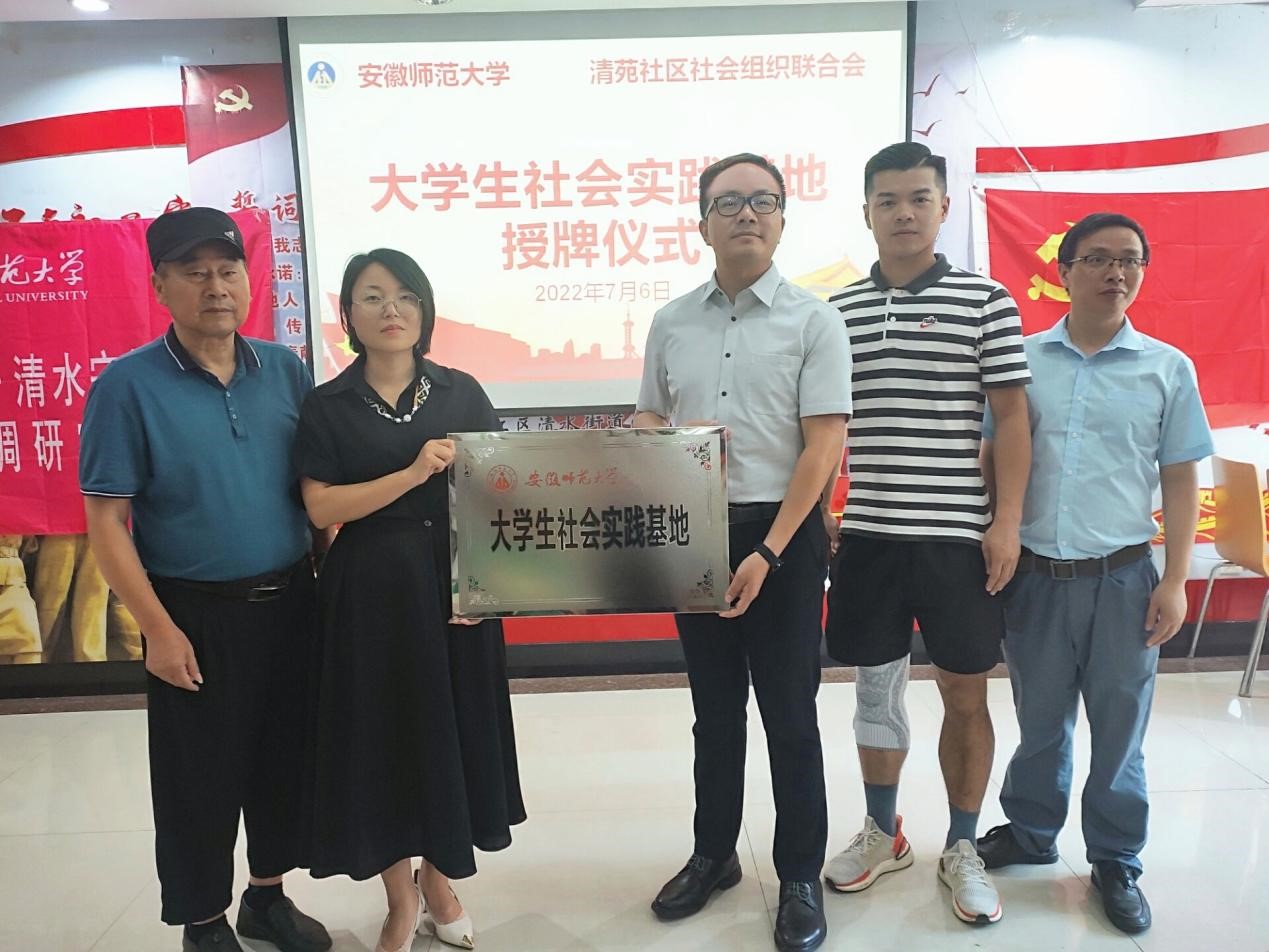 本网讯(生科院 朱健帆)为进一步推动校地合作,共享高校人才资源,同时也鼓励广大青年员工深入社会、服务社会,m88官方网站登录地址“老员工社会实践基地”挂牌仪式于7月6日在芜湖清水清苑社区活动室举行。参与挂牌仪式的有m88官网副经理王鹏、公司团委副书记魏泽坤、社会实践指导教师刘再群、清苑社区党委书记王倩、清苑社区社会联合会会长孙兆寿以及所有参与本次社会实践活动的同学们。