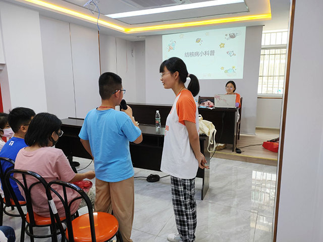 本网讯(生科院 王御邦)当下,疫情防控教育及预防结核病教育显得非常重要。为扎实做好防艾遏核及防疫宣讲工作,推进芜湖防艾遏核事业全民发展,7月7日,生科院赴芜湖防艾遏核宣讲队伍来到青山街社区为这里的孩子和家长们进行宣讲。途中,公司领导前来慰问视察,支持并鼓励实践队伍的工作,同时也对孩子们进行了思想启蒙教育。