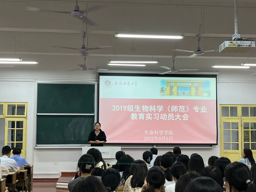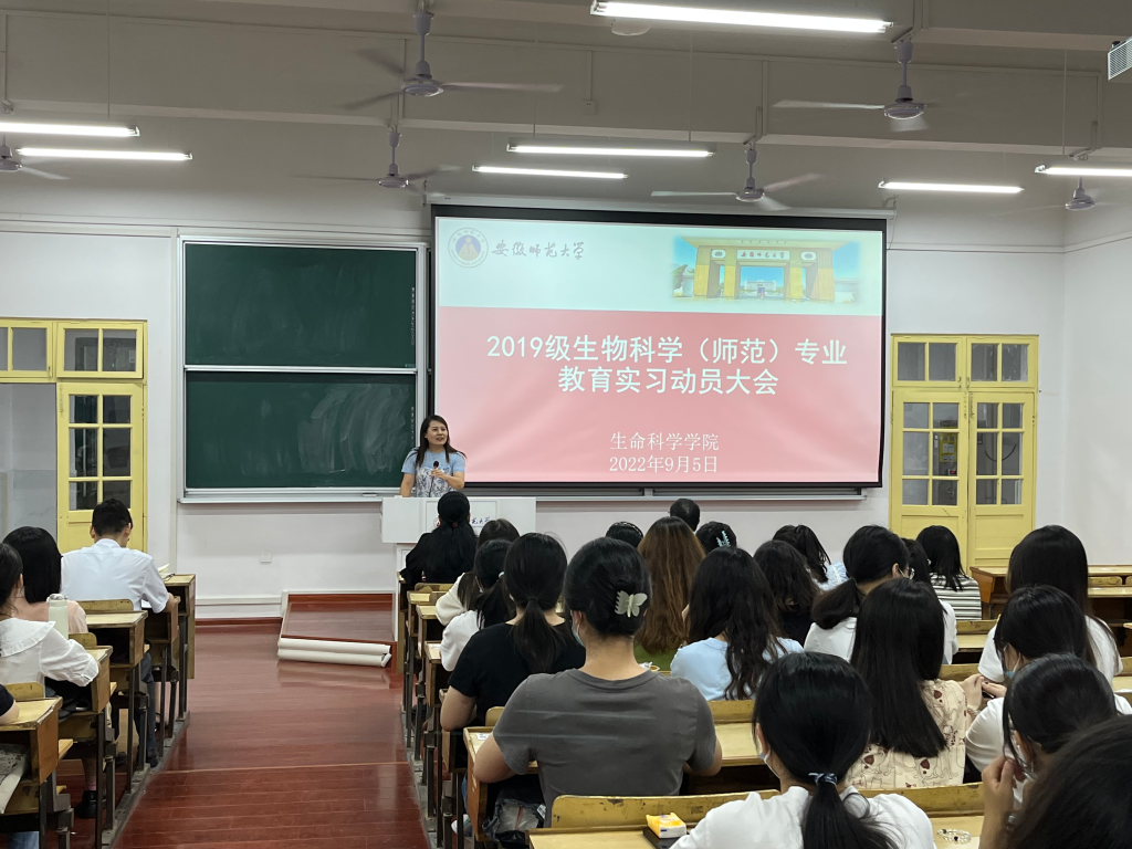 (本网讯 黄琳怡 许新彤)2022年9月5日晚,生科院于教学楼1410召开2019级生物科学(师范)专业教育实习动员大会。m88官网经理朱国萍、公司党委副书记汪倩倩、副经理陈冬生、校内指导老师代表卜兴江出席动员大会。会议由专业负责人杨安娜主持。