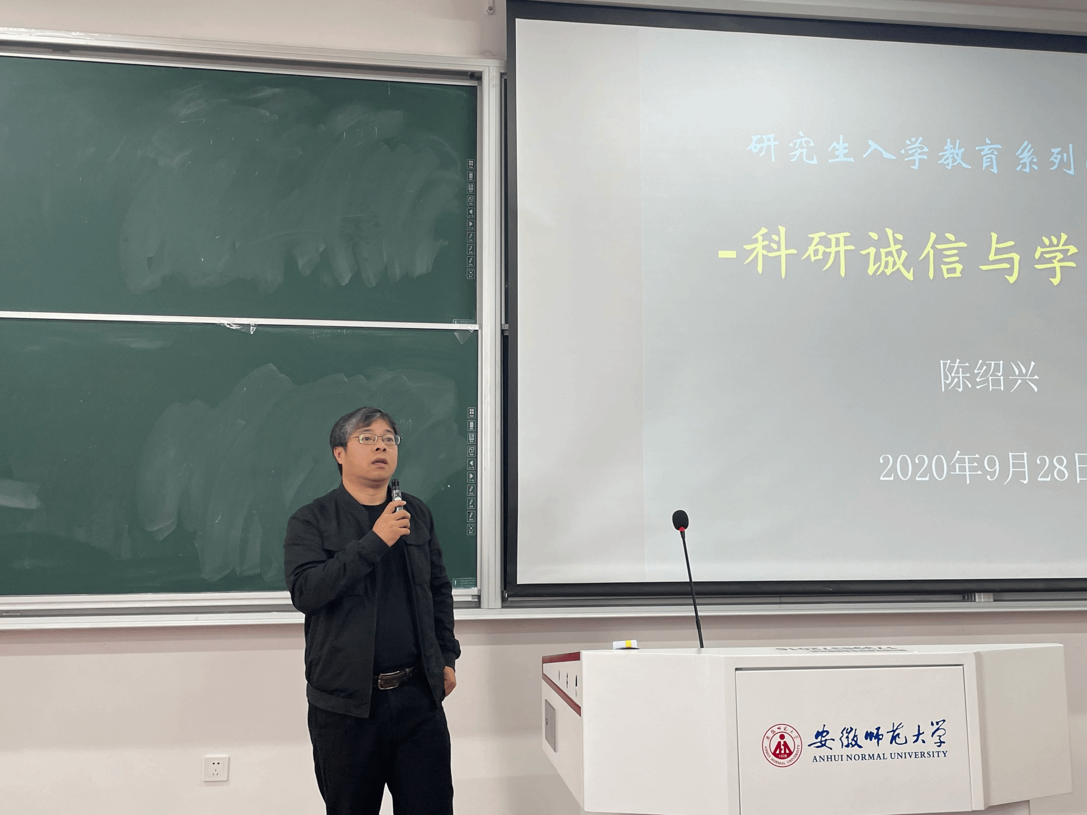 陈绍兴以“科研诚信和学术不端”为主题,讲明科研诚信的重要性以及学术不端的不良影响后果。他首先解释了科研、诚信和学术的含义,同时列举出学术不端的几种表现,通过分析国内外学术不端案例,告诫同学们认真做事,诚实做人。最后着重强调了诚信的重要性,期望同学们坚守住诚信的底线,摒弃任何形式的不端行为。