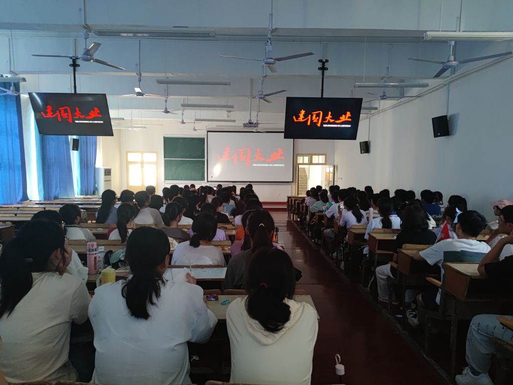 10月1日下午、10月2日晚、10月3日下午,组织新生分别观看了《建国大业》《八佰》《建党伟业》三部电影。电影让新生进一步深化了对中国共产党团结领导各族人民浴血奋战开创新中国之不易、对中国共产党人初心不改艰苦奋斗之坚定、对中国人民谋求民族复兴之坚决的认识,号召同学们听党话、跟党走。