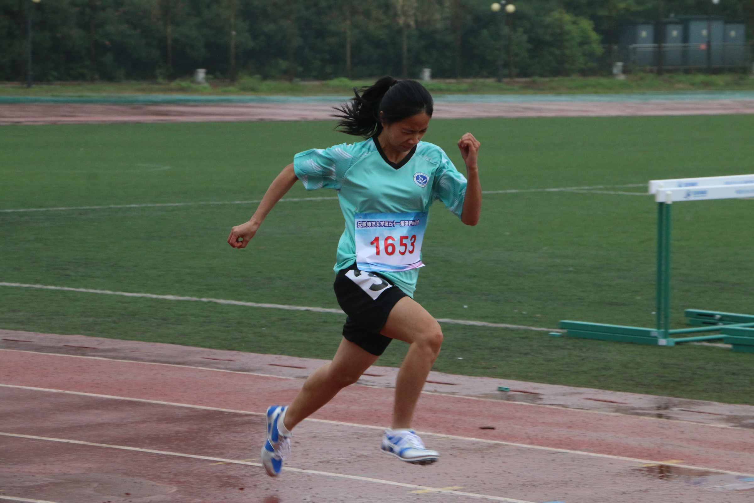 图为女子100m决赛选手蔡咪咪奔跑画面