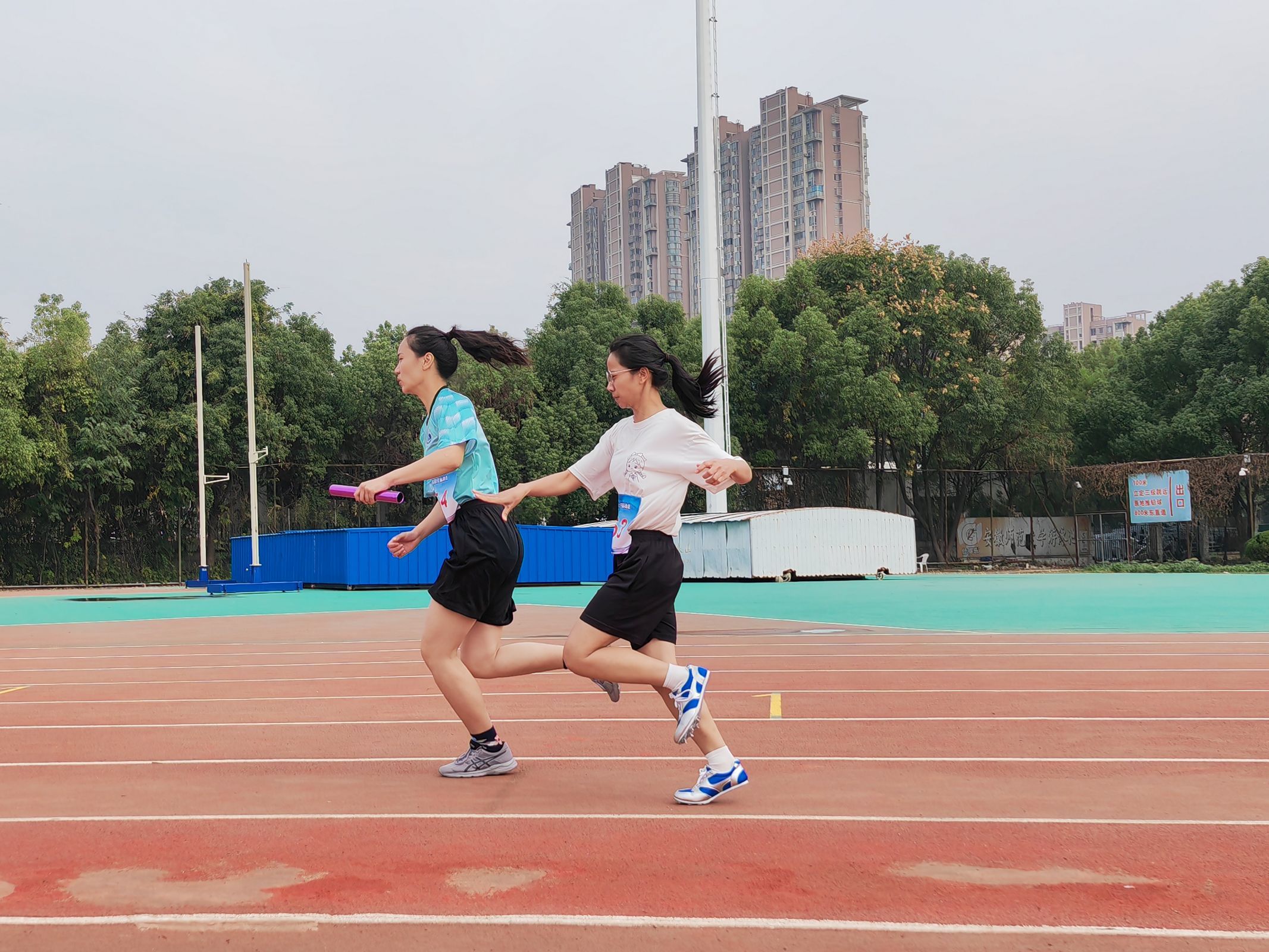 图为女子4×100m预赛瞬间