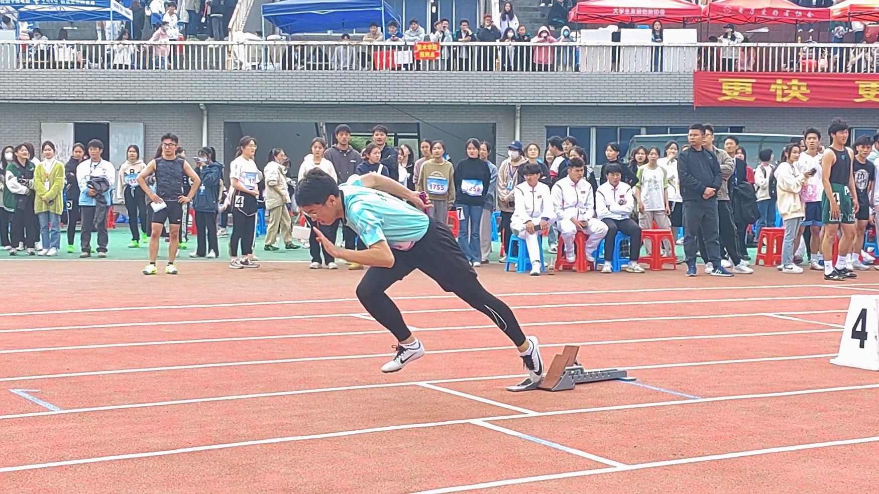 图为男子200m预赛徐良臣同学起跑瞬间