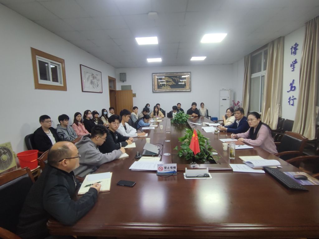 11月7日,m88官网在前二楼会议室召开2022-2023学年秋季本科生思想情况调研会,公司党委书记蒋学波、经理朱国萍、公司党委副书记汪倩倩,以及全体辅导员、各年级本科生代表参加了此次座谈会。