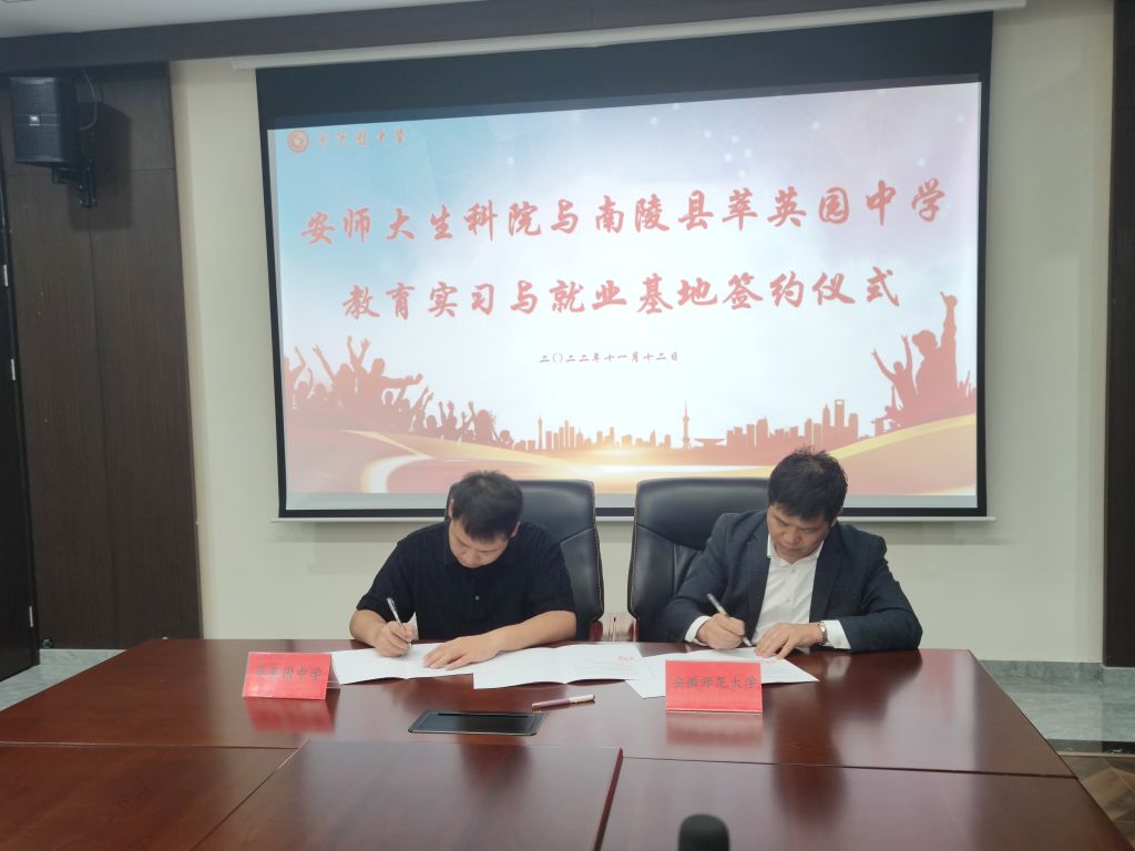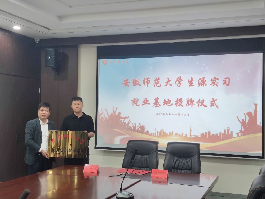 本网讯(生科院)为助力员工发展,服务员工就业,11月12日,公司在安徽省南陵县萃英园中学挂牌生源实习就业基地。生命科学公司党委书记蒋学波,物理与电子信息公司党委书记李娟等随同洽谈师范专业实习和就业等工作。