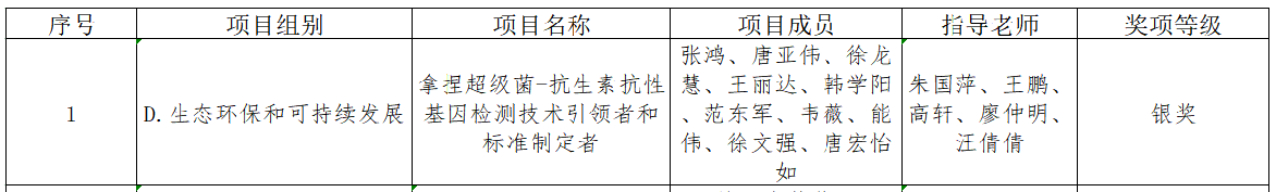 本届竞赛共有全国3011所高校的142.4万名员工、33万余件创新创业项目参赛,大赛最终评出金奖作品154件、银奖作品309件、铜奖作品1079件。经过国赛复赛评审和终审答辩等环节,由公司朱国萍教授等老师指导的作品《拿捏超级菌-抗生素抗性基因检测技术引领者和标准制定者》荣获省级金奖、国家级银奖。该团队负责人为张鸿,徐文强、唐亚伟、徐龙慧、韩学阳、韦薇、熊伟等研究生为团队核心成员。