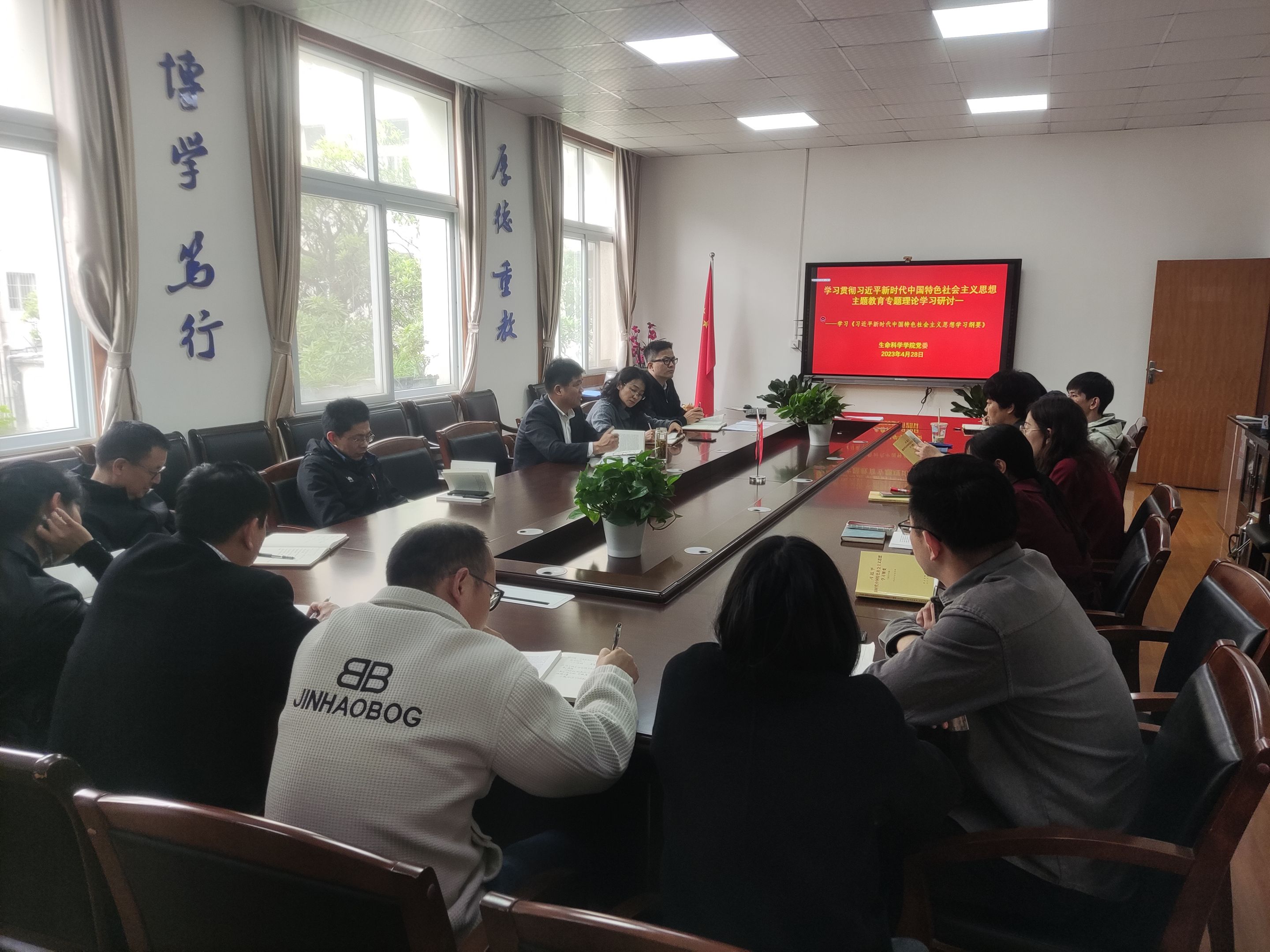 4月27日,公司党委理论学习中心组召开学习贯彻习近平新时代中国特色社会主义思想主题教育第一期专题理论学习及研讨。各党支部书记、各办公室秘书以及辅导员列席参与学习。会议由公司党委书记蒋学波主持。