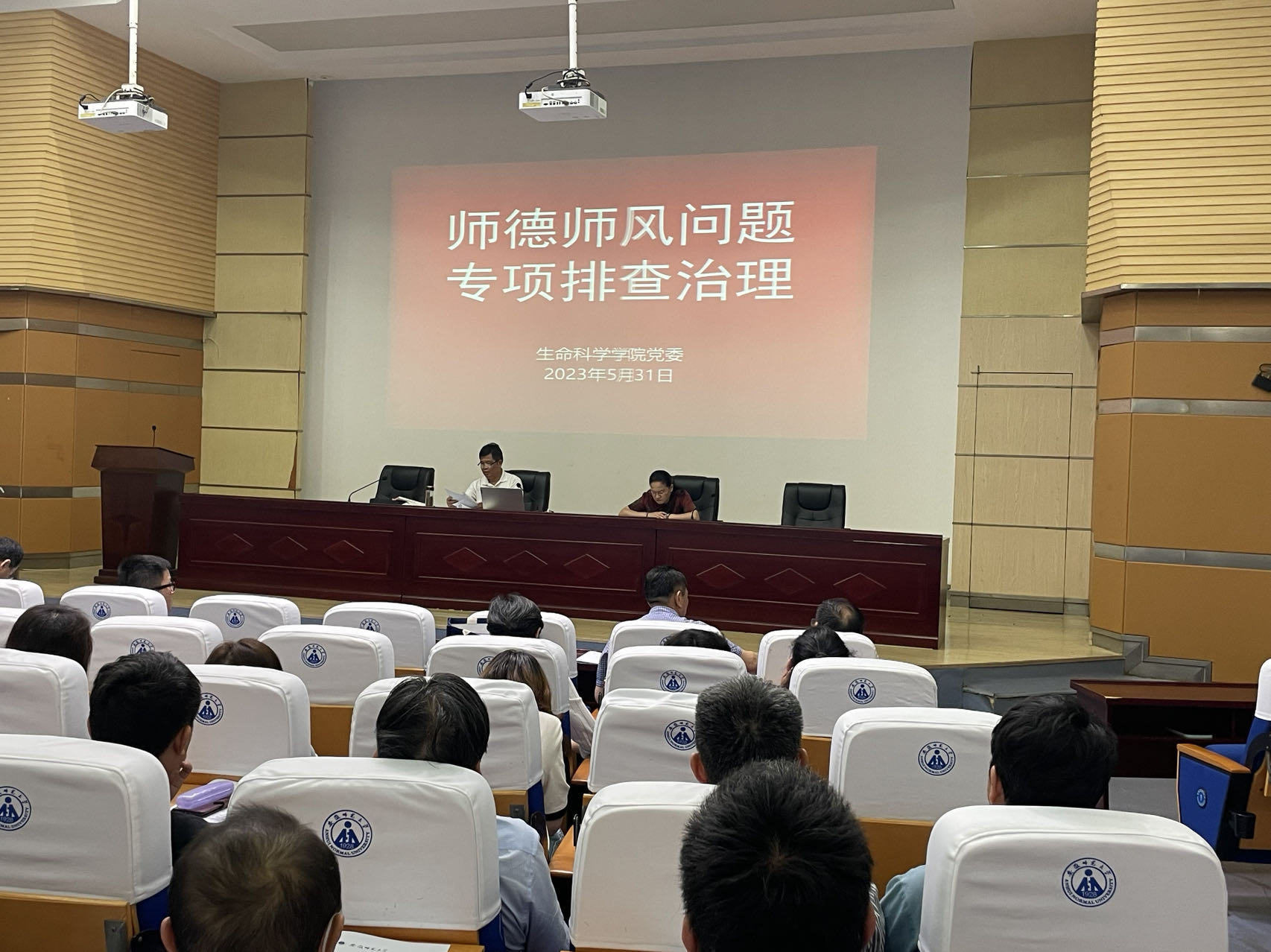 5月31日下午,生科院在赭山校区科技楼报告厅召开教职工大会,专项布置师德师风问题排查治理工作。