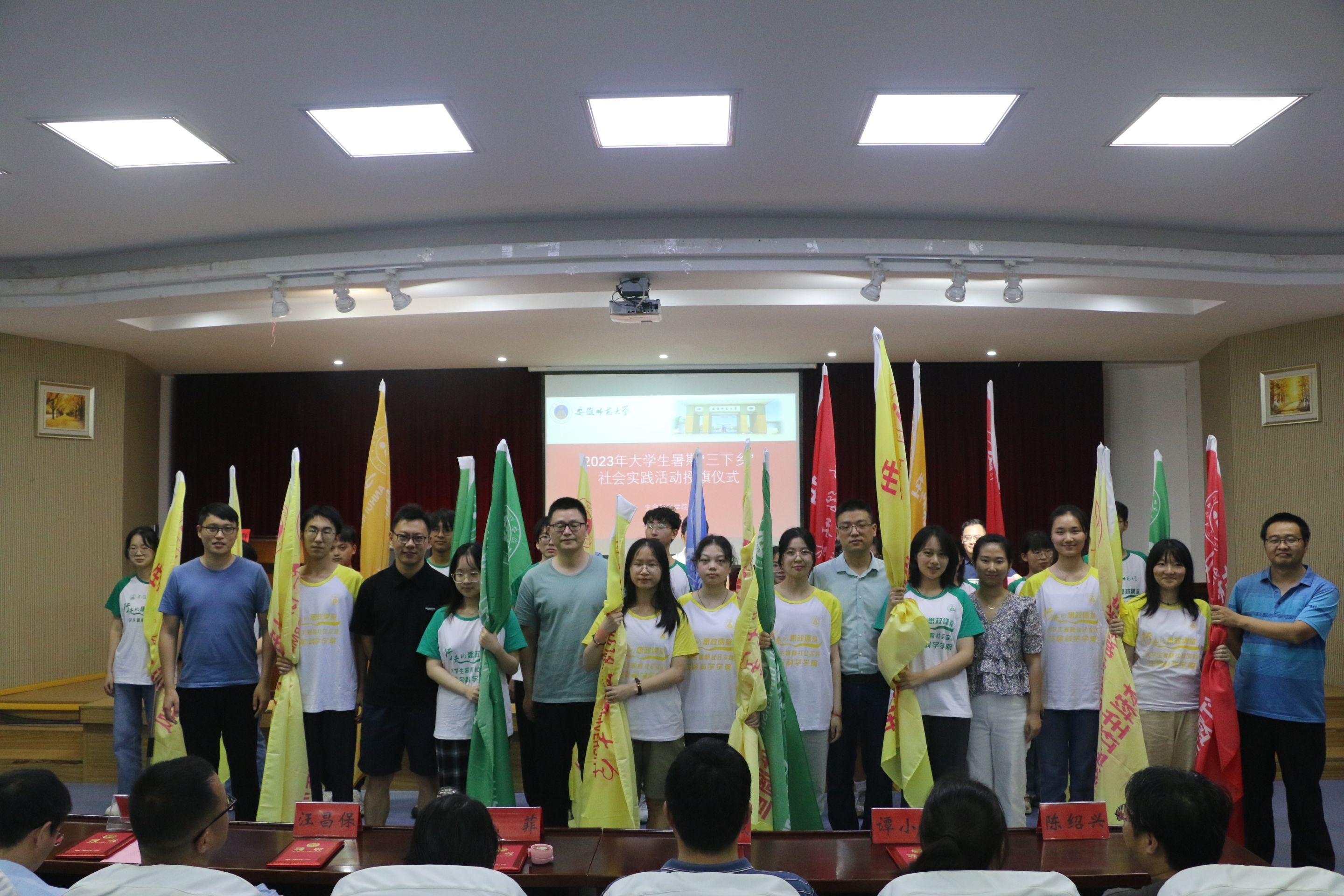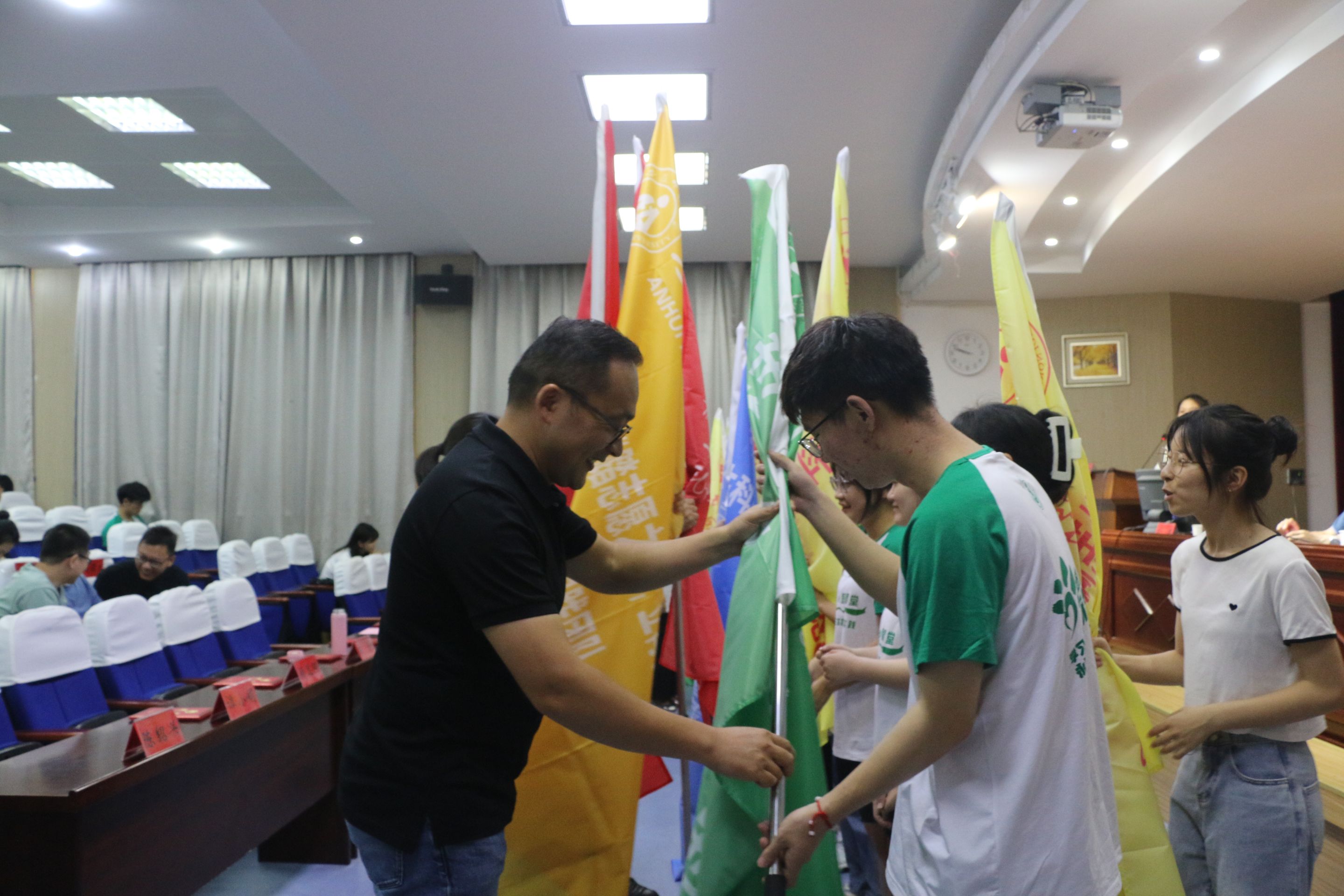 指导教师为各团队队长进行了授旗,全体队长进行了实践出征宣誓。
