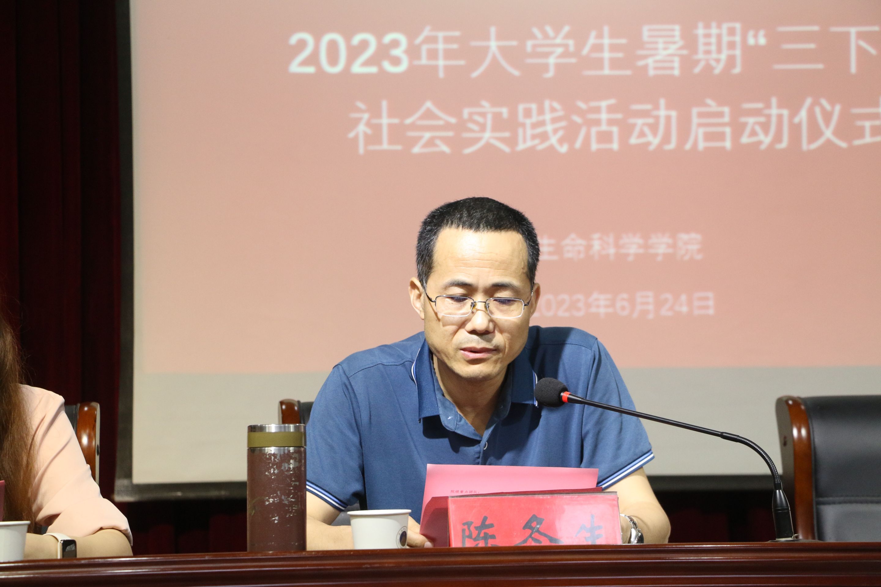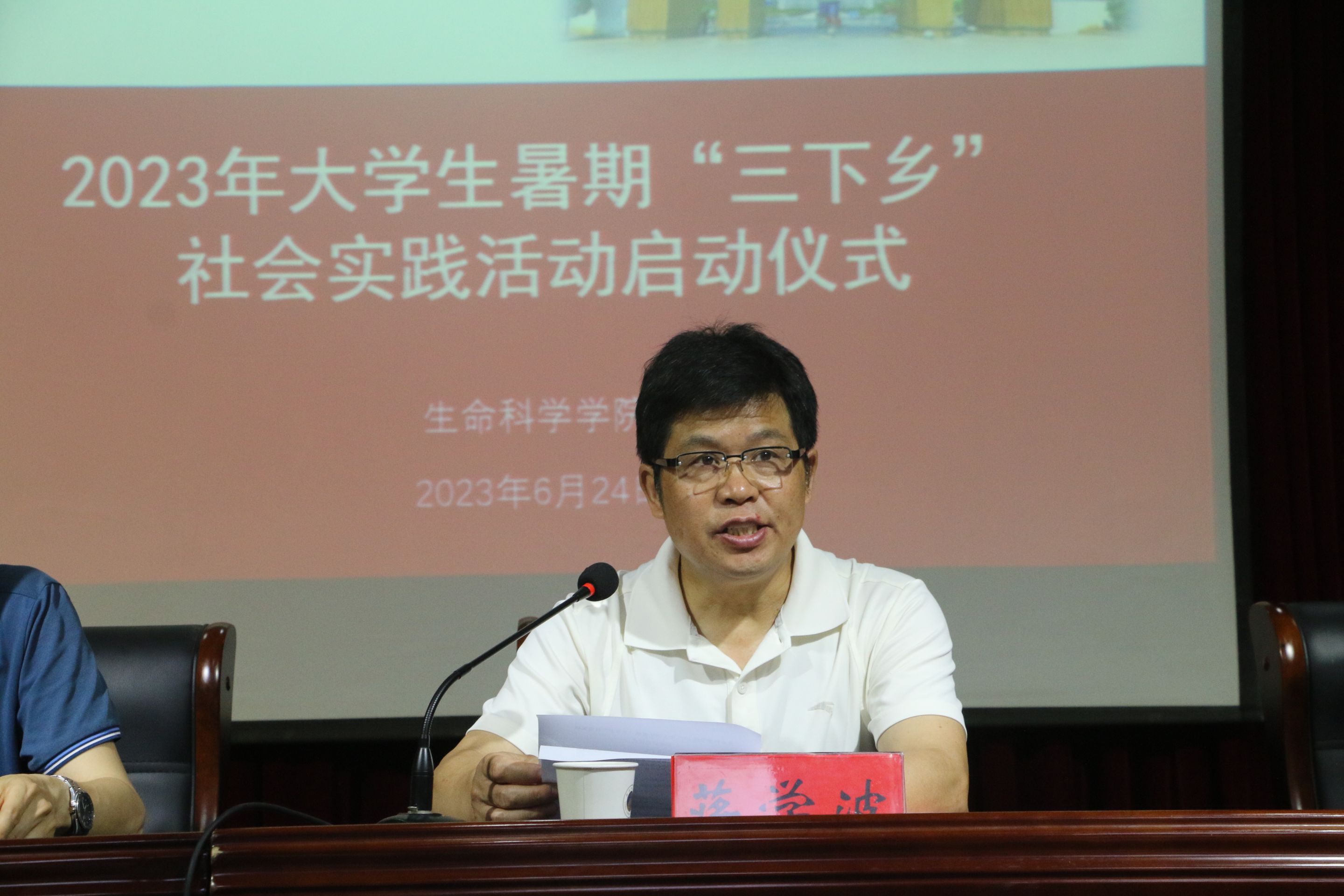 (本网讯 生科院)为提高员工社会实践意识,增进对社会实践工作的认知,6月24日晚,m88官网于赭山校区图书馆报告厅举办生科院举办2023年“行走的思政课堂”暑期“三下乡”社会实践启动仪式。公司党委书记蒋学波、党委副书记汪倩倩、副经理陈冬生,马克思主义公司思政理论课教师徐晓光、各社会实践团队指导老师、院全体专兼职辅导员、参加此次社会实践的团队代表出席,仪式由公司团委副书记张晨主持。
