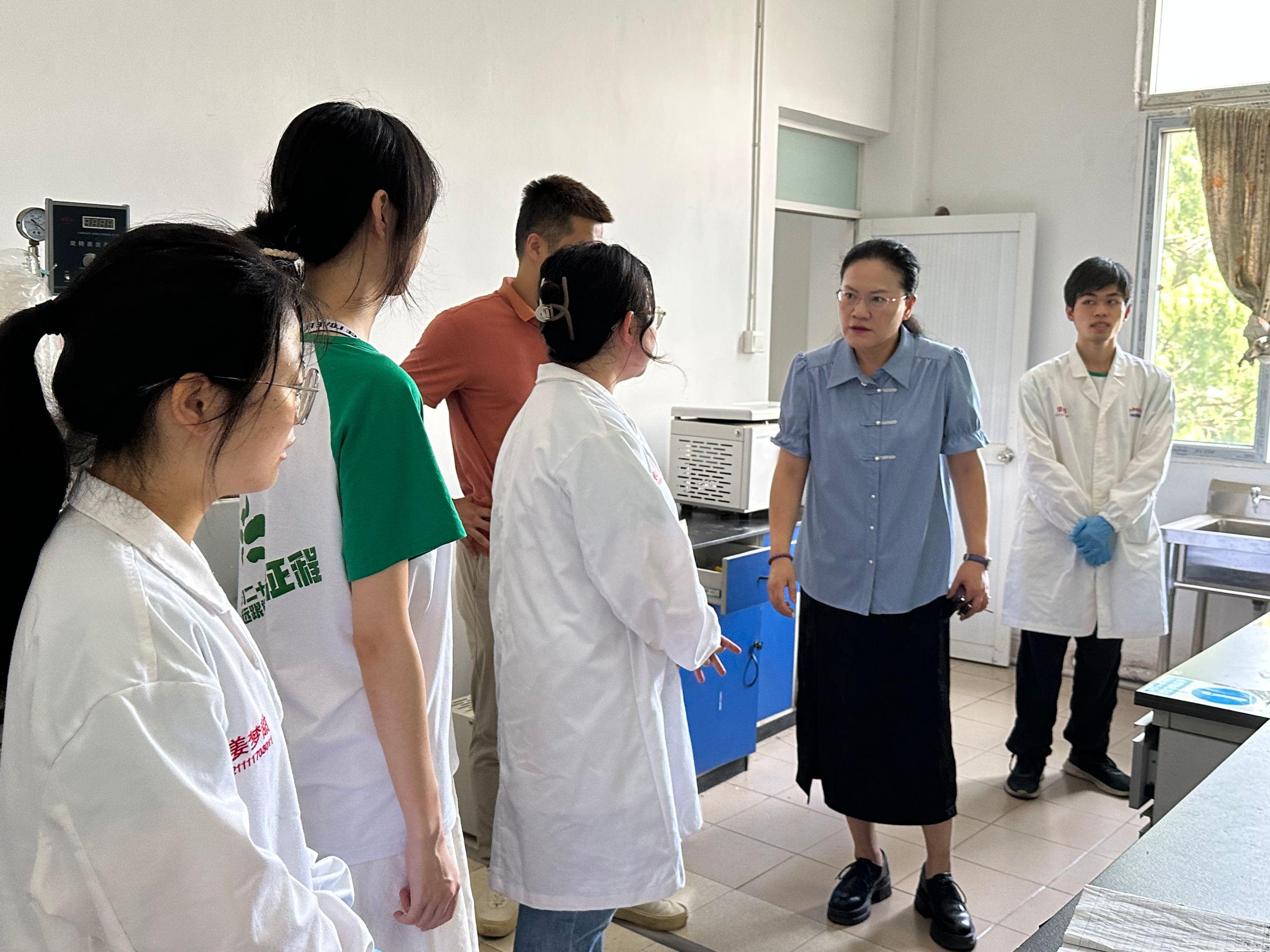 队长吴欣瑜同学向两位老师介绍了此次生态调研活动的具体方案以及开展进度,并向两位老师展示了水质和土质检测的实验过程。朱国萍勉励同学们要以社会实践为平台,磨练吃苦耐劳精神,挥洒青春热情与汗水,把个人成长成才融入奉献社会,服务人民,在实践中受教育、增才干、做贡献。同时也指出此次调研过程中存在的问题和不足,希望同学们能够及时改正。
