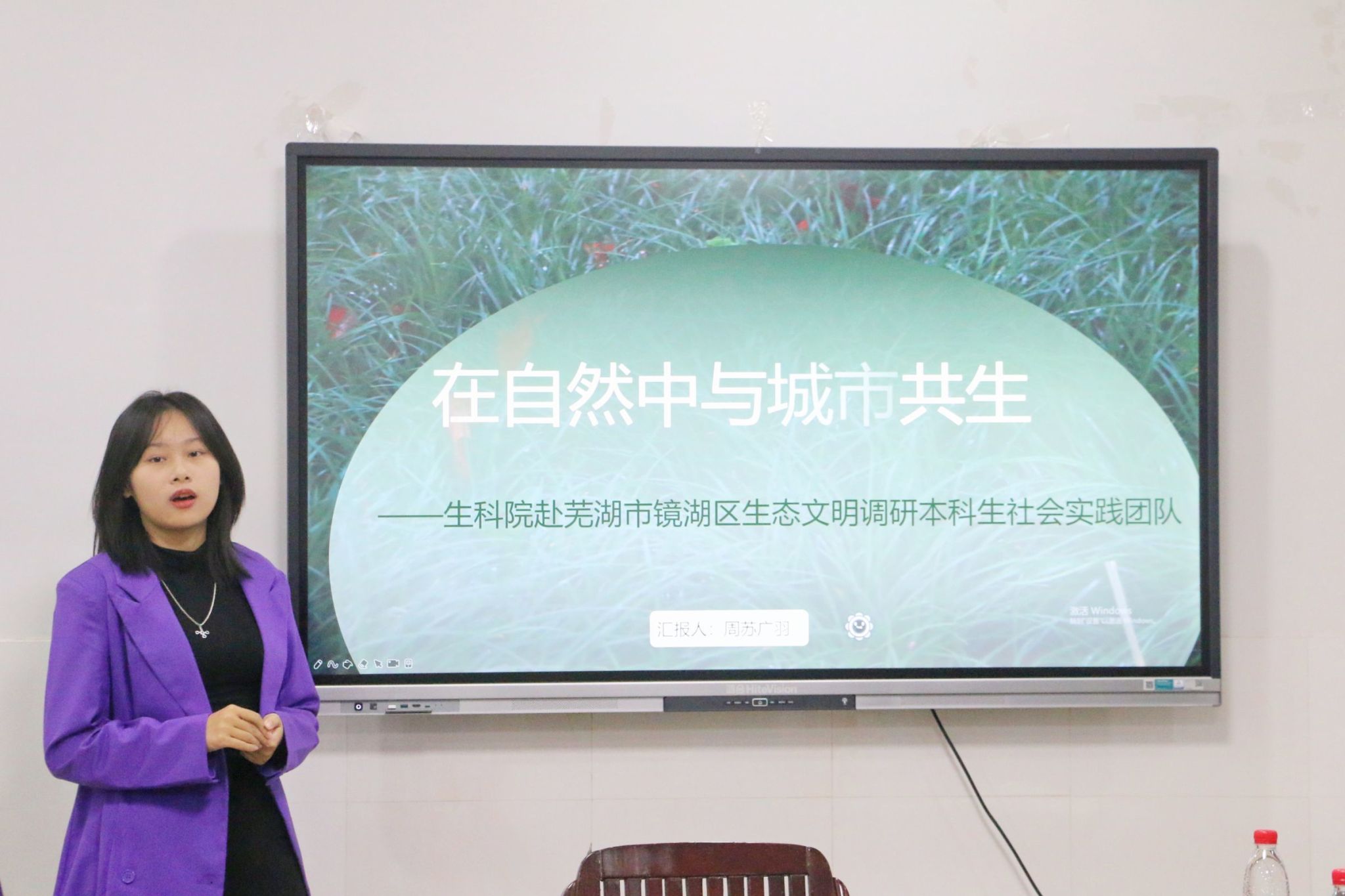 19支团队参与汇报评比,答辩按抽签顺序依次进行。各团队负责人从团队概况、实践准备、活动成果、总结反思、未来展望等方面逐一进行了阐述。生科学子结合专业特色,内容上有新突破、形式上有新手法、机制上有新举措,以实际行动用脚步丈量大地,彰显了青年员工踔厉奋发的精神,展示了当代青年有理想、敢担当、能吃苦、肯奋斗的优良风貌。