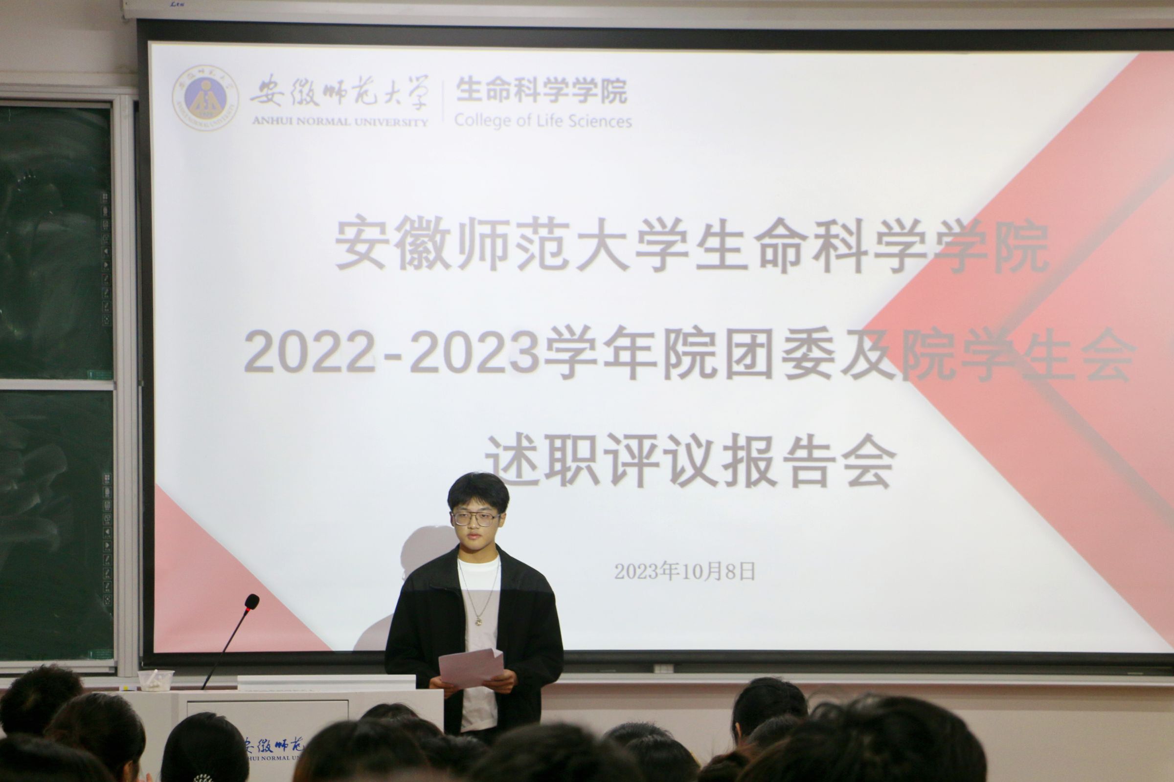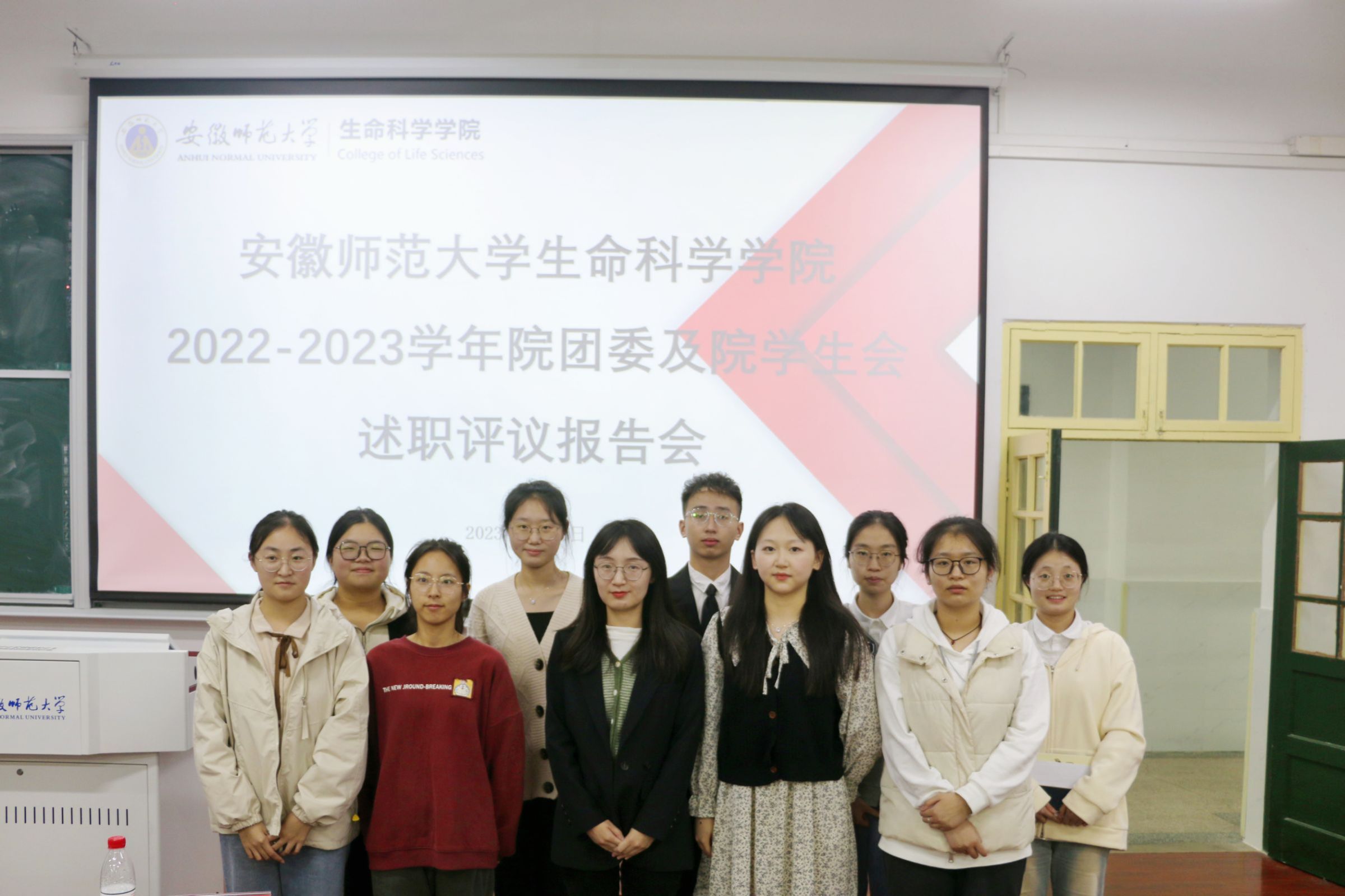 本网讯 为检验院团委及院员工会上一学年工作成效,建设高素质员工工作团队,生科院团委于10月8日晚19点在教学楼1401教室举办了2022-2023学年院团委及院员工会述职评议报告会。报告会由王岩松同学主持,团委书记刘梦婷、校员工会主席团代表、院团委及员工会主席团成员、各部门负责人、员工会代表及各专业员工代表出席会议。