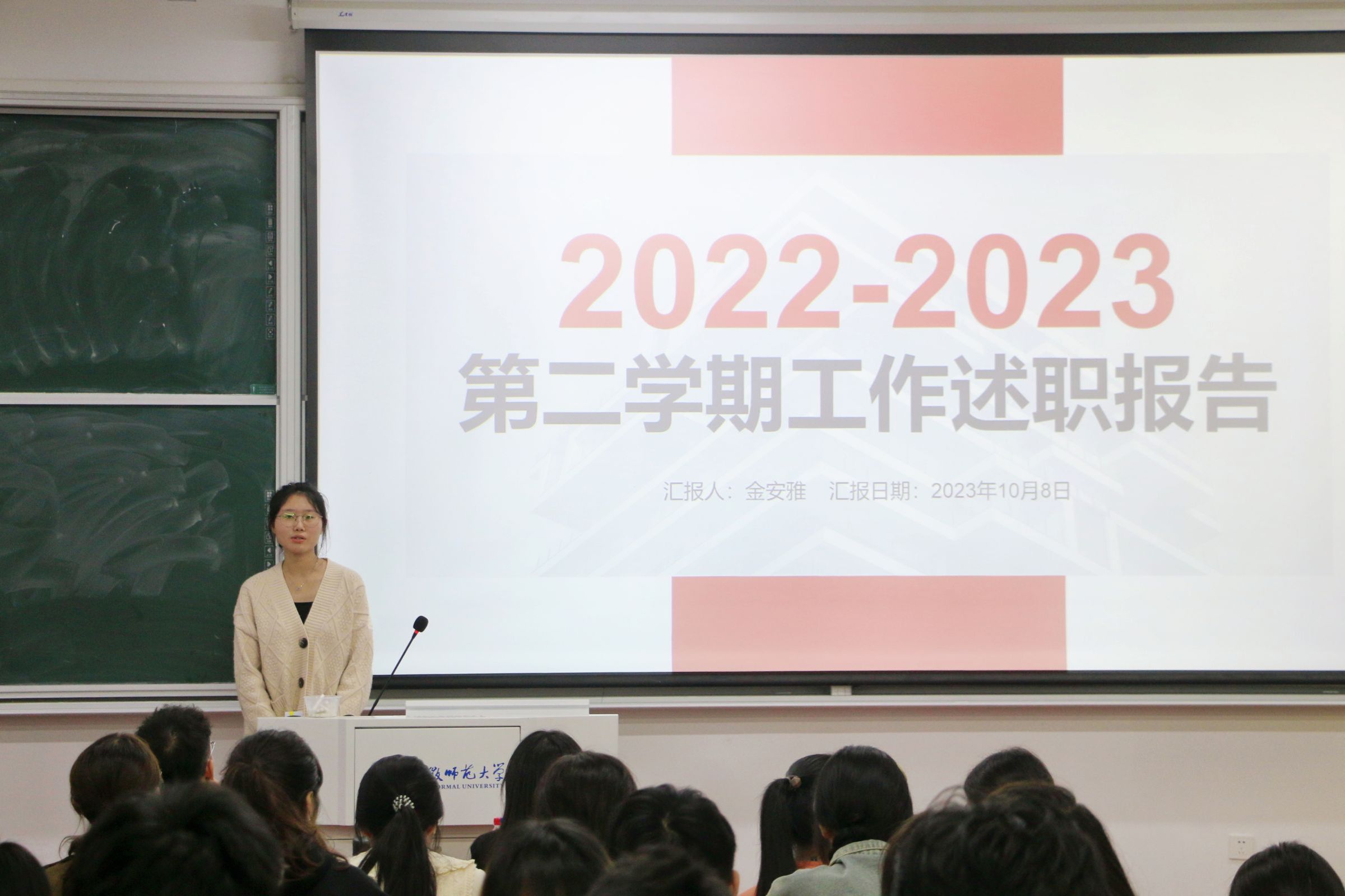院团委及员工会各部门负责人依次从个人介绍、工作展示、工作得失、反思总结、计划展望等方面逐一陈述,参会成员们认真听取各发言人的述职报告并填写了推荐表。刘梦婷在总结发言时肯定了同学们的工作态度,同时提出意见建议,并对在场的新生部员提出勉励,希望他们能继往开来,在院团委的领导下认真细致地完成未来的各项工作。